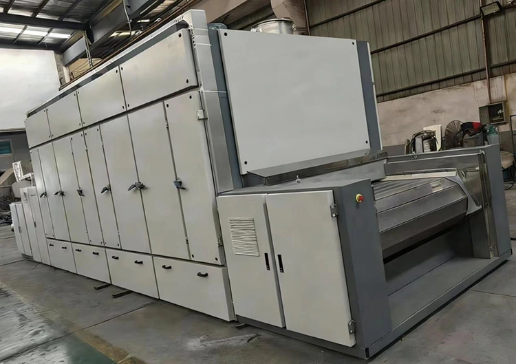 Tato sušička volných vláken je vylepšenou verzí tradiční sušičky, která se vyznačuje vysokým stupněm automatizace, snadnou obsluhou, širokým nastavitelným rozsahem rychlosti pro sušící řetězec a vysokou energetickou účinností.