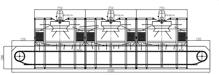 1. Hlavní zónování: Sušička volných vláken je rozdělena na dvě části: sušicí zónu (3 komory) a přenosovou část.